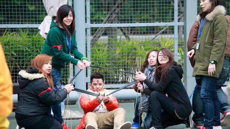 Participants are introduced to unusual traditional sports in a way that encourages participation, inclusion and mutual respect. Everyone has an opportunity to get involved and contribute to team and tribal success – there are roles for everybody. Designed to set the pulse racing, this healthy experience develops team dynamics while having fun! Strategy is key to success as the rules enable teams to play to their strengths, resting chosen players during some challenges in order to reserve strength for their preferred quests.
